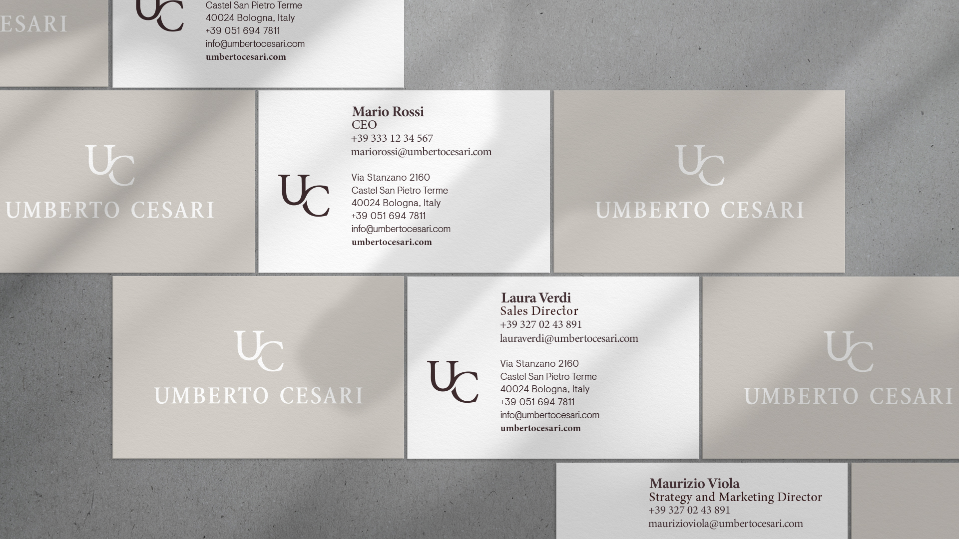 Su questi fondamentali valori, abbiamo riprogettato tutta l’identità visiva e il nuovo posizionamento sul mercato dell’azienda, creando un sistema coerente, adatto alla comunicazione online e offline applicando la metodologia del Dynamic brand. La nuova identità racconta l’importante virata verso il nuovo: il logo, attraverso un lettering contemporaneo e forte, esprime proprio la continuità tra tradizione e innovazione in una classicità contemporanea. Il nuovo logo è composto dal monogramma U e C insieme al logotipo Umberto Cesari. La palette dei colori corporate sono il marrone e il beige per far riconoscere fin da subito la vicinanza dell’azienda con la terra.