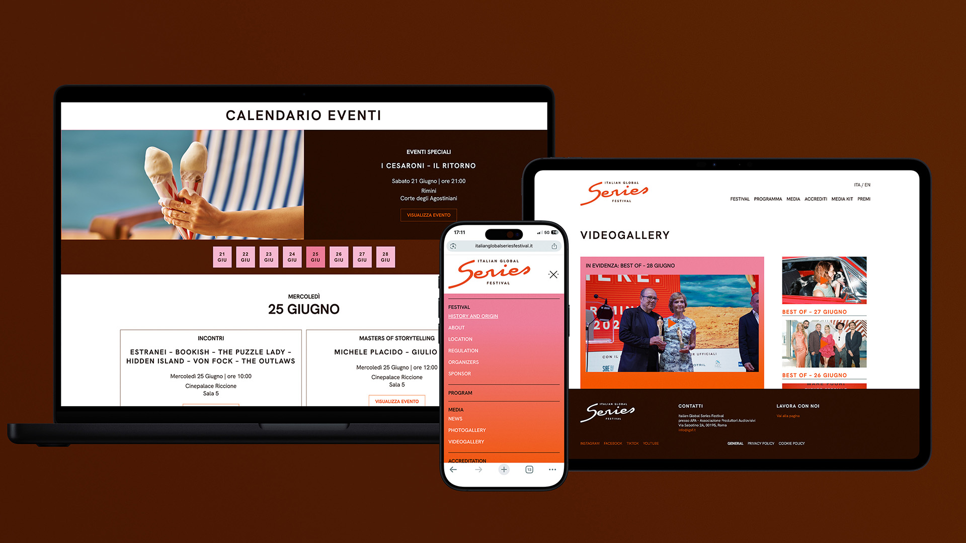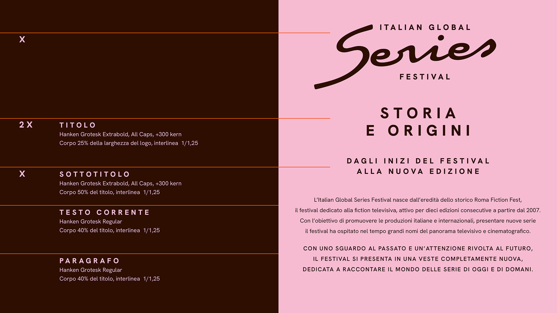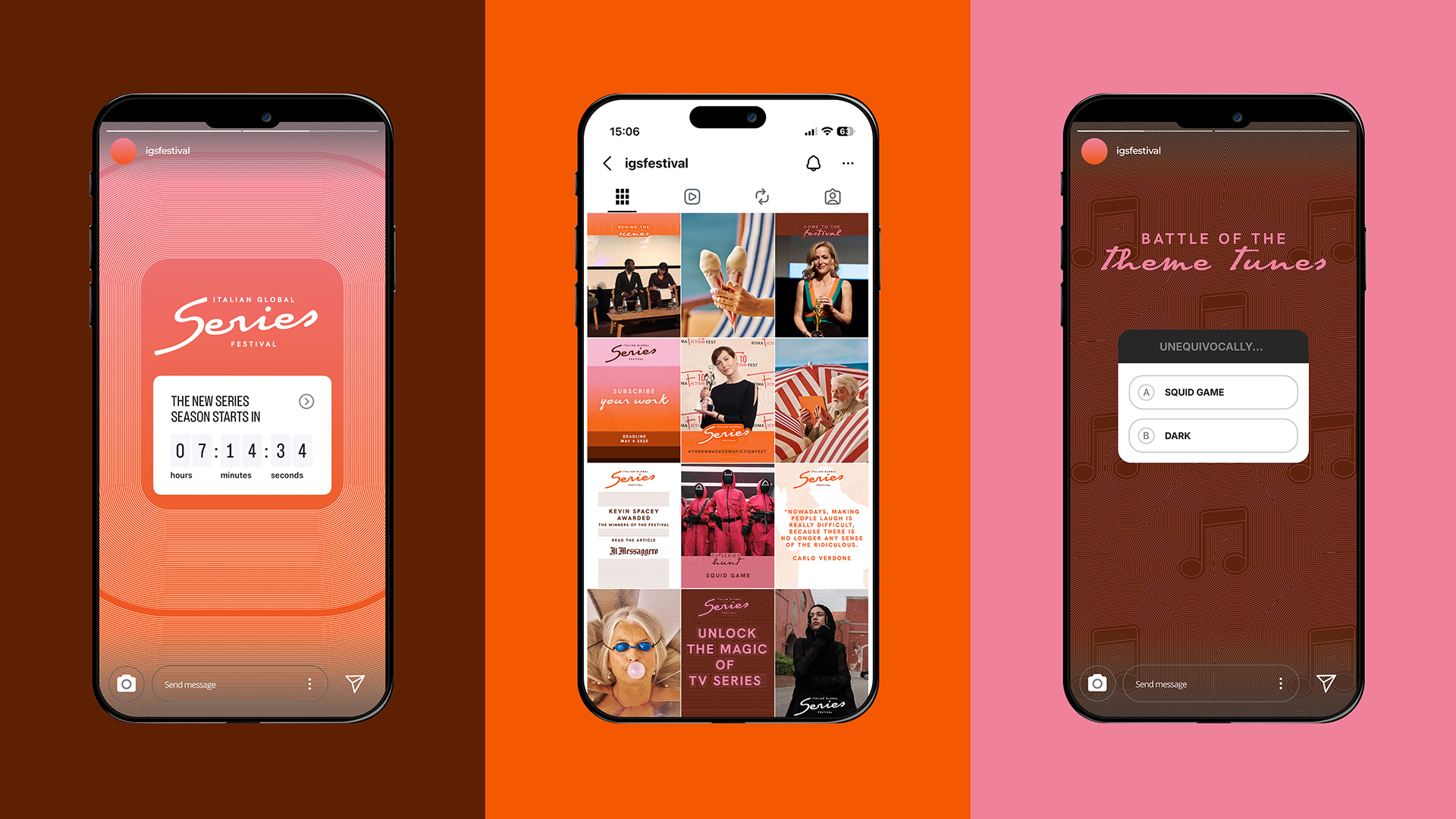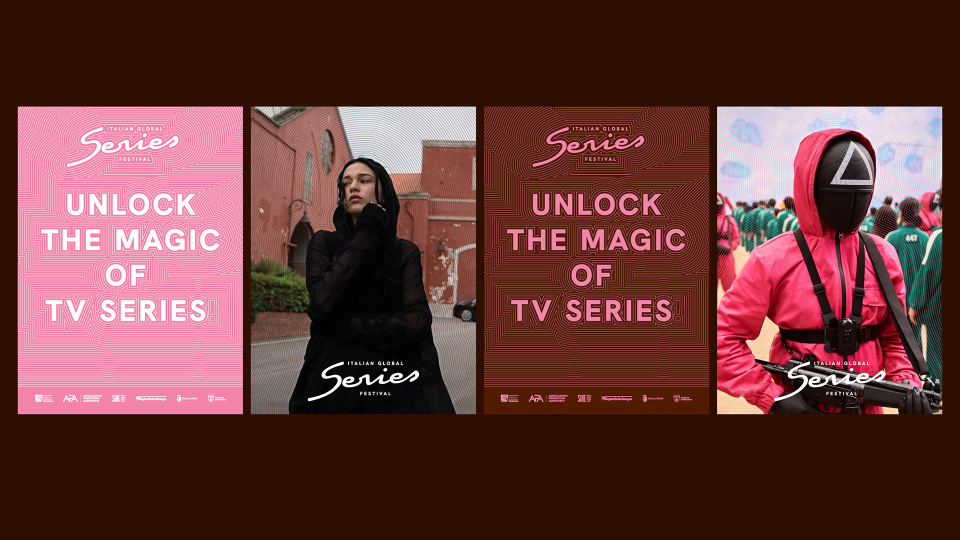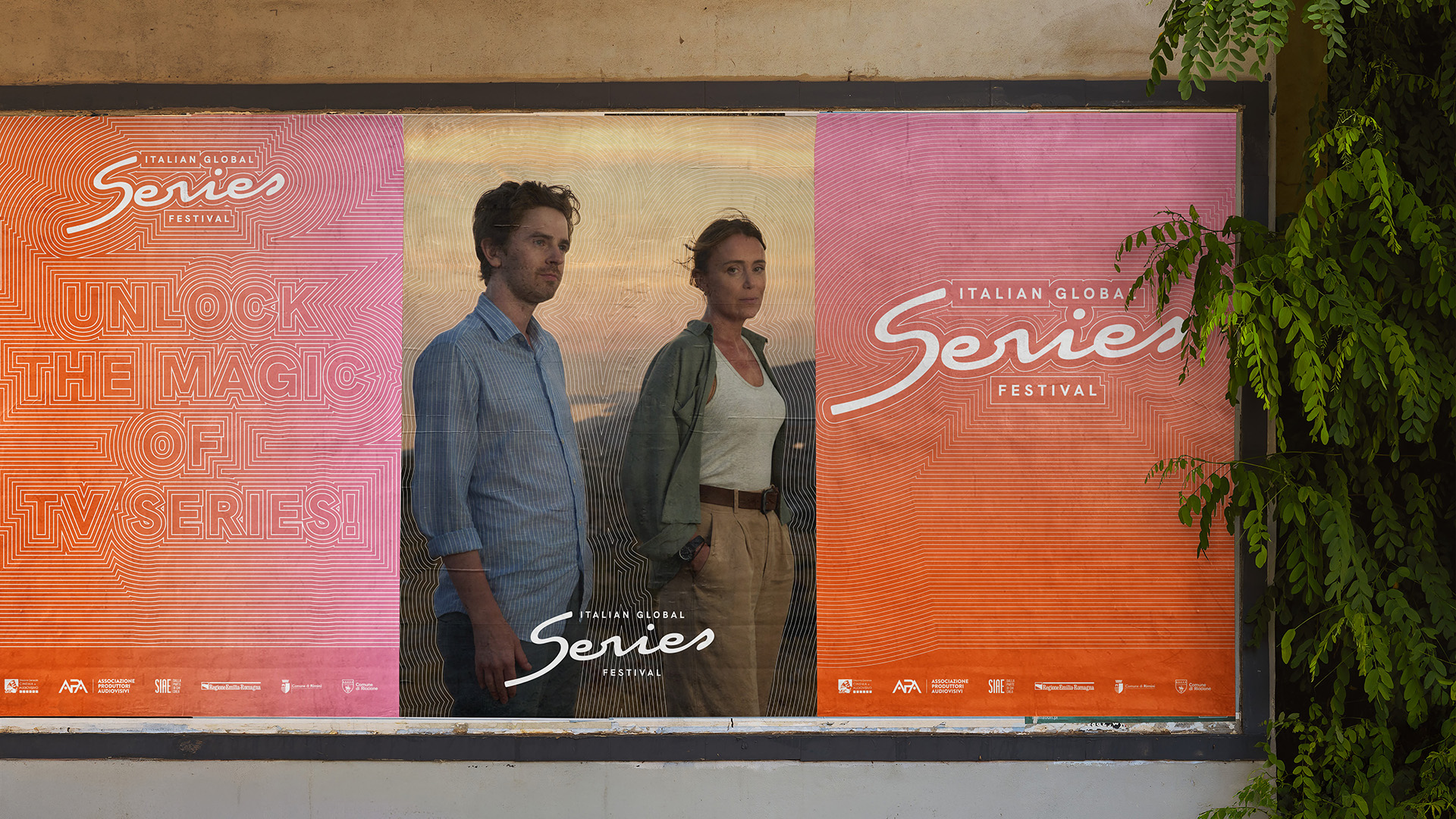 The Italian Global Series Festival builds on the legacy of the Roma Fiction Fest, which was dedicated to television drama. For the first edition of the festival, promoted by the APA and the MIC, we designed the logo and corporate identity. We also conceived and oversaw the multi-platform communication campaign, including photography and video, and designed the festival venue setups. We created a Dynamic brand that represents contemporary series in an accessible, pop, and international way. It is a MAD Genius Group project curated by Cappelli Identity Design and co-produced with Moonel Studio.